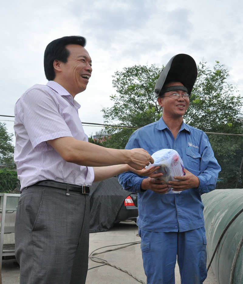 7月12日上午,县委副书记、县长孙云耀,县委副书记孟柏干等县领导冒着高温到独山DN1000自应力管改造现场慰问供水公司一线职工,向供水管道安装人员表示慰问,并送上防暑慰问品,叮嘱大家继续坚守岗位,科学安排工作,合理调整作业时间,切实做好防暑降温工作。米兰(中国)公司董事长倪阿泉等有关领导陪同慰问。