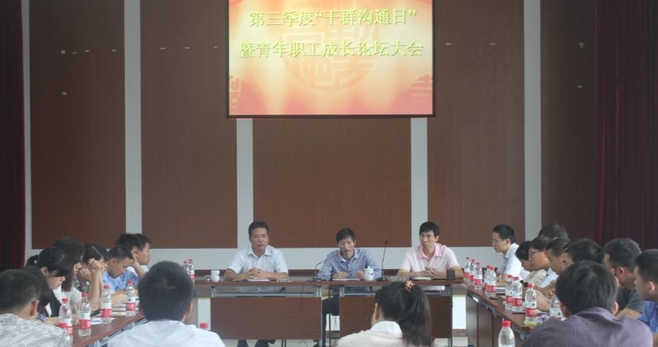 ,滨海水司在新会议室举办了第三季度“干群沟通日”暨青年职工成长论坛。公司领导、各部室负责人,以及21位30岁以下青年职工代表出席论坛。