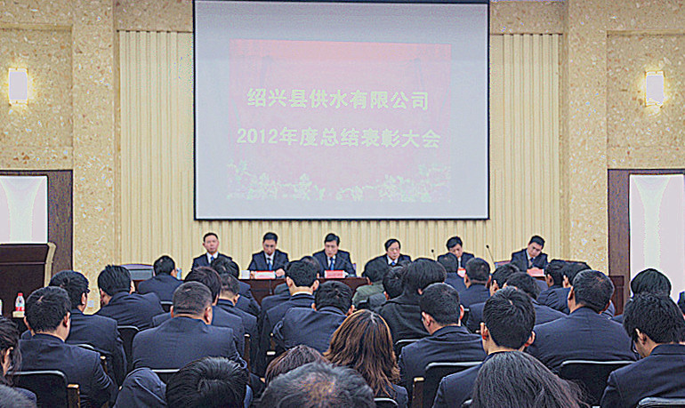 谷董事长在报告中指出,刚刚过去的2012年,公司紧紧围绕“安全求实、管理求精、服务求新、行业求先”的总体思路,通过广大干部职工共同努力,圆满完成米兰(中国)下达的各项经济指标和工作任务,呈现出七大亮点:一是全力为政府排解困难,王坛饮用水条件得到根本性改善;二是有效理顺高层二次供水管理体制,接收接管工作取得重大突破;三是如期投运区域分质供水工程,小舜江供需矛盾有效缓解;四是成功创建城区现代化分公司,分公司管理有了新标杆;五是强势推进GIS运行管理,建设工作走在米兰(中国)系统前列;六是全面贯彻106项水质新国标,水质监测能力又有新提高;七是管网运行管理日益精细,供水产销差率保持行业领先。2012年,公司还取得多项荣誉:成功创建成为全省供水行业第一家通过安全生产标准化国家二级标准验收的企业、顺利取得管道工程专业承包三级资质、绍兴市质量管理“四星级”企业、绍兴市示范化数字档案室、连续三年被评为“市级治安安全示范单位”; 公司党总支顺利创建成为绍兴县“创先争优”先进基层党组织。