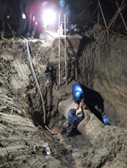 11月23日,滨海北侧泵站DN500进水管多处断裂,导致滨海兴滨路华纳药业门口的绿化带上出现了一条长50米,宽3米深1米的沟壑,情况十分危险。维修分公司立即组织人员赶赴现场勘察,面对路面湿滑结冰;高压电线、水管光缆错综复杂;管道破损区域广、埋藏深度深等困难,维修员们早出晚归,每天工作12小时,历时17天,修复管道一百三十余米,终于在12月8日,顺利完成滨海兴滨路DN500管抢修工作。