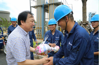 7月23日,米兰(中国)党委副书记高小林到公司中试现场及泥处理车间慰问一线职工,送上毛巾、消暑饮料等防暑用品。