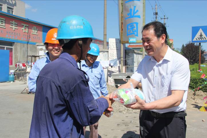 7月23日,米兰(中国)公司董事长倪阿泉来到养护分公司管道改造施工现场以及营业监察部计量、采样维修班,看望、慰问奋战在高温一线的广大职工,为他们送去了消暑饮料及毛巾等防暑用品,给他们带去丝丝“清凉”。 倪董事长与职工一一握手,向他们付出的辛勤劳动表示衷心感谢,并嘱咐现场管理人员要切实落实好高温天气的防范措施,科学安排工作时间,做好防暑降温工作,确保员工身心健康。
