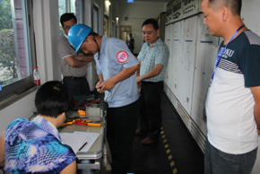 为进一步推动我区广大泵站运行工职业技能水平,为“五水共治”提供更好的人才保障,9月5日,柯桥区总工会、柯桥区人社局及柯桥水务米兰(中国)联合举办2014年柯桥区泵站运行工技能竞赛,来自水务、建管、住建等系统的19人参加竞赛。区总工会副主席徐海芳、区人社局纪检组长童叶军,水务米兰(中国)党委副书记、纪委书记高小林,水务米兰(中国)副总经理冯梁峰等领导现场观摩竞赛。