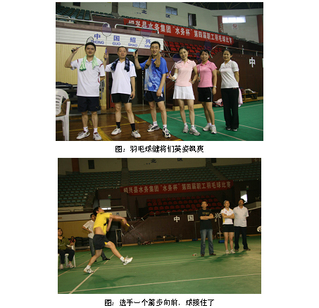 为宣扬企业文化,提倡“快乐工作、健康工作”,增进青年职工的团队协作意识,增进同事之间的默契度,拉近跨部门业务的操作距离,2010年5月22日,水务米兰(中国)团委在绍兴市城东体育馆举办了第四届“水务杯”羽毛球比赛。